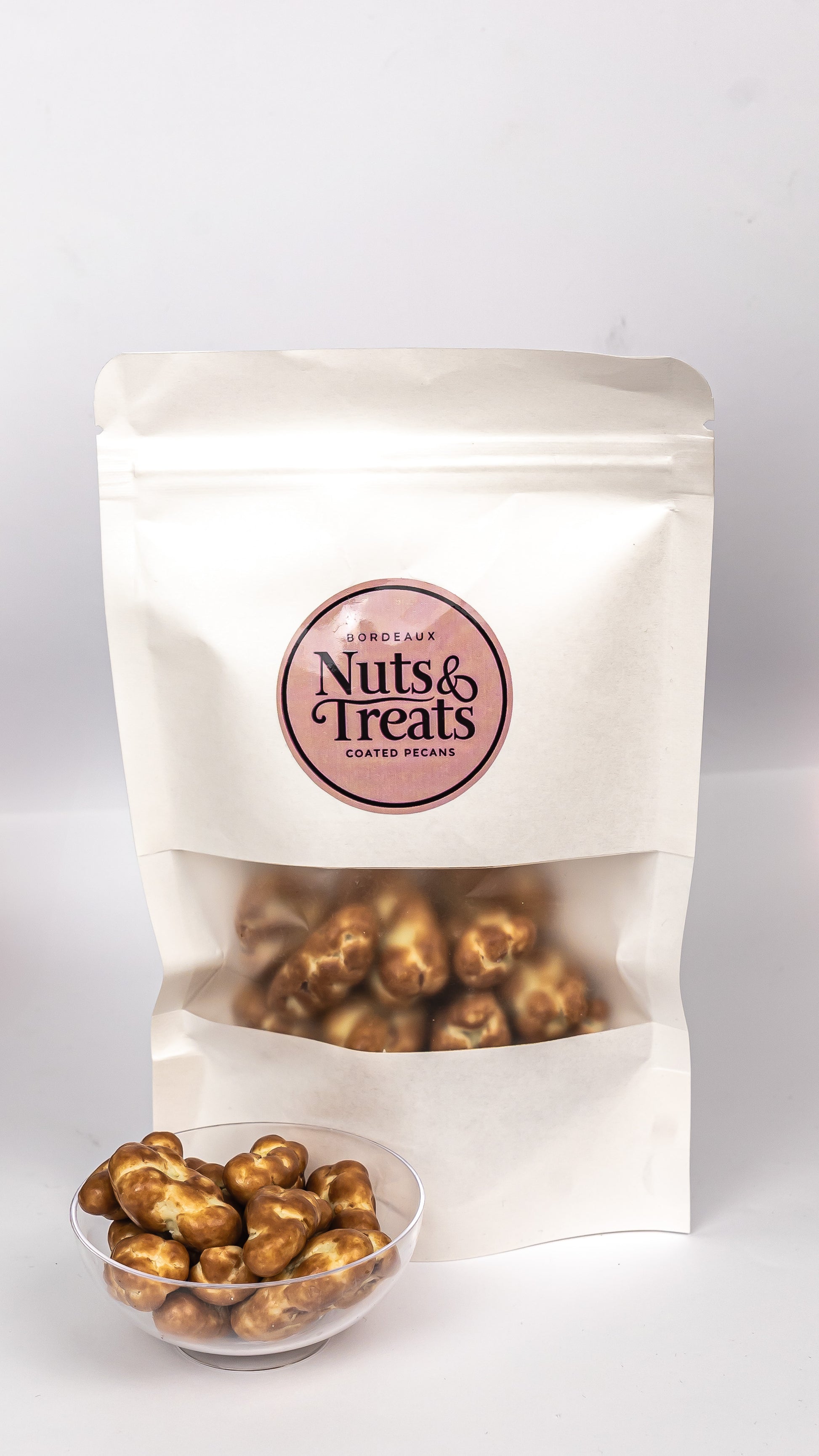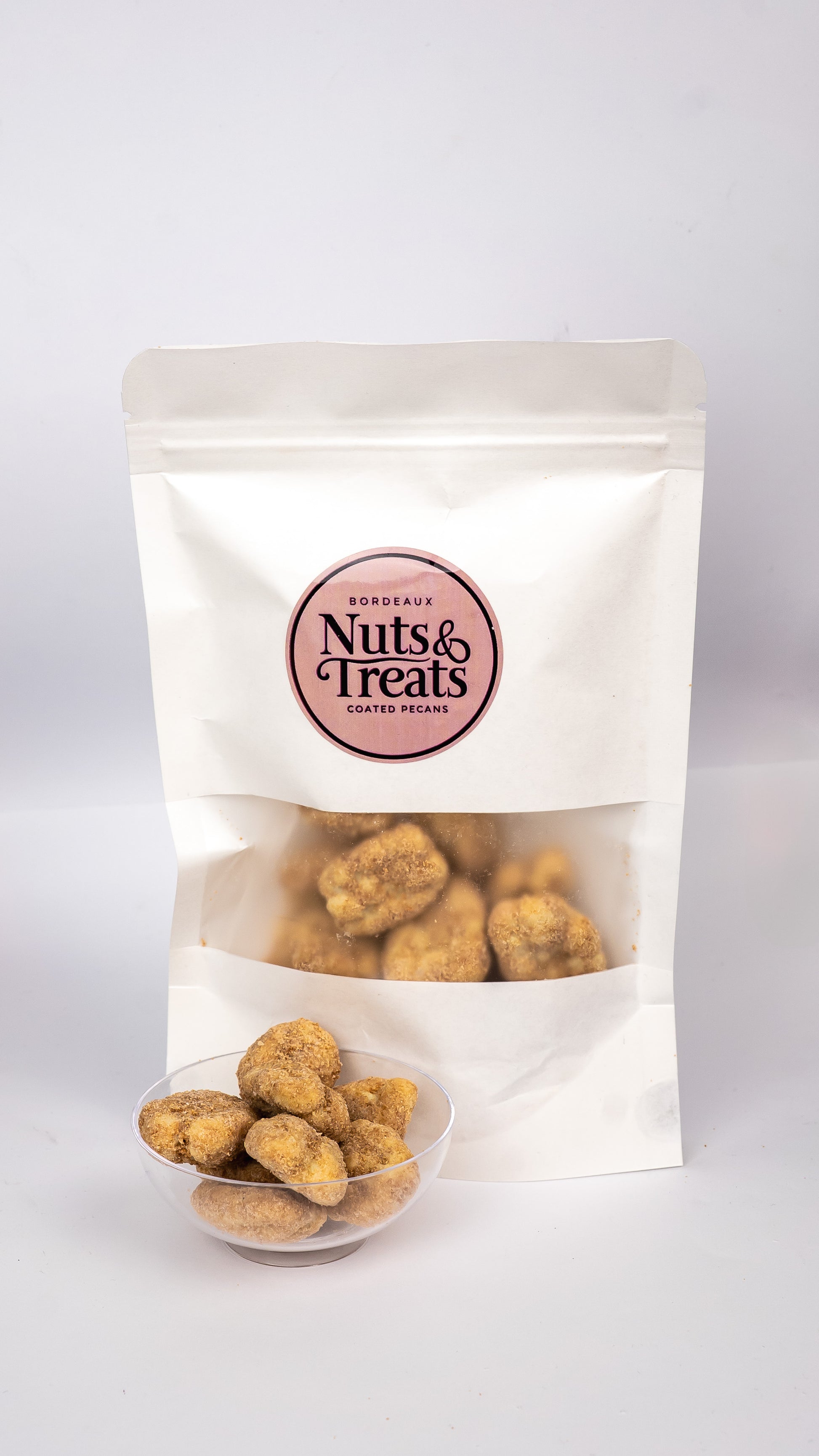 Chaque sachet contient des noix de pécan entières, soigneusement sélectionnées, puis enrobées à la main pour garantir une texture parfaite.